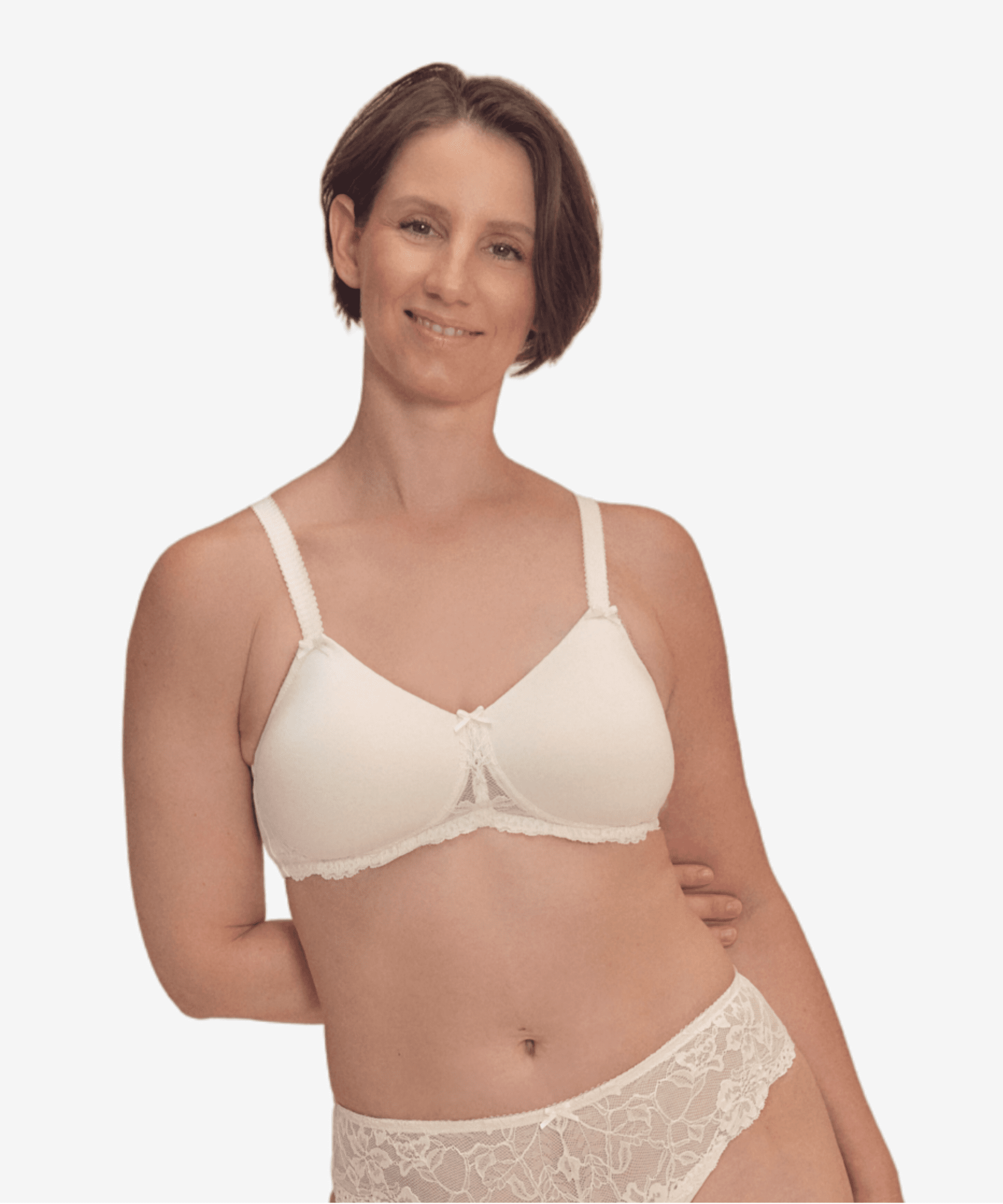 - Padded soft bra made of a comfortable cotton material at cups and back in combination with a rich cotton lace at the cradle
